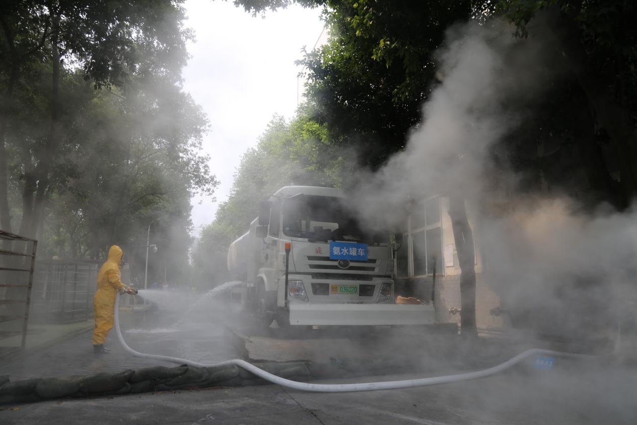 2023年5月31日,為檢驗和提高武侯工業(yè)園突發(fā)環(huán)境事件應急救援處置能力,完善處置機制,由成都市她妝美谷(武侯工業(yè)園)管委會主辦,成都市武侯生態(tài)環(huán)境局、四川省工業(yè)環(huán)境監(jiān)測研究院等單位,在東方凱特瑞(成都)環(huán)保科技有限公司開展了2023年突發(fā)環(huán)境事件聯(lián)合應急演練。 本次演練以假設東方凱特瑞廠區(qū)內(nèi)氨水儲罐在卸料過程中發(fā)生泄漏事故,并造成大量氨水進入雨水管網(wǎng)、部分氨水傾灑在廠區(qū)路面為事故背景。事故發(fā)生后,東方凱特瑞第一時間啟動應急預案,組織內(nèi)部應急處置隊伍開展先期處置,并同時向成都市武侯生態(tài)環(huán)境、成都市她妝美谷(武侯工業(yè)園)管委會進行報告。