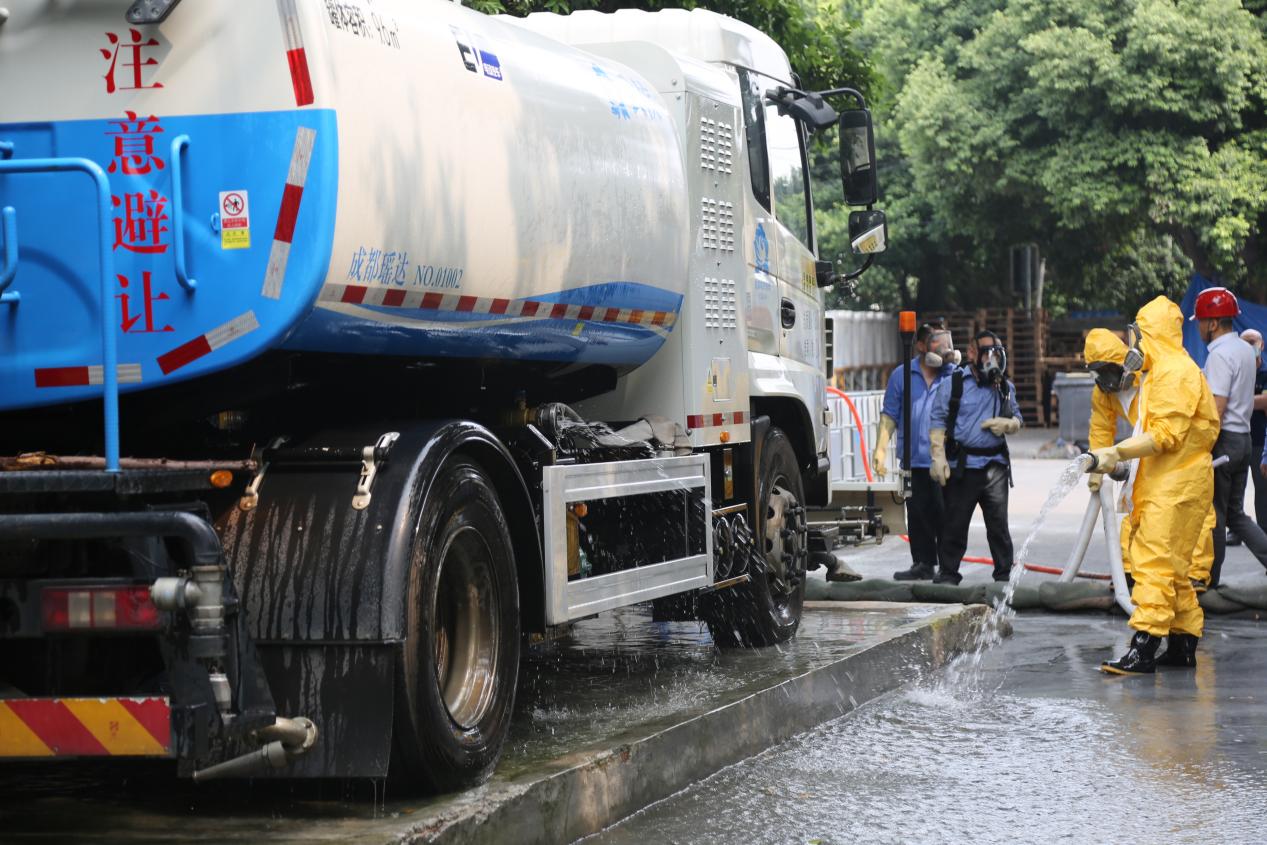 成都市武侯生態(tài)環(huán)境局、成都市她妝美谷(武侯工業(yè)園)管委會接到請求支援后,迅速啟動了區(qū)級、街道應急處置力量趕赴我司現(xiàn)場,依次進行了突發(fā)環(huán)境事件確認與報告、人員疏散撤離與警戒設置、應急處置、現(xiàn)場監(jiān)測分析、處置情況跟蹤等工作。