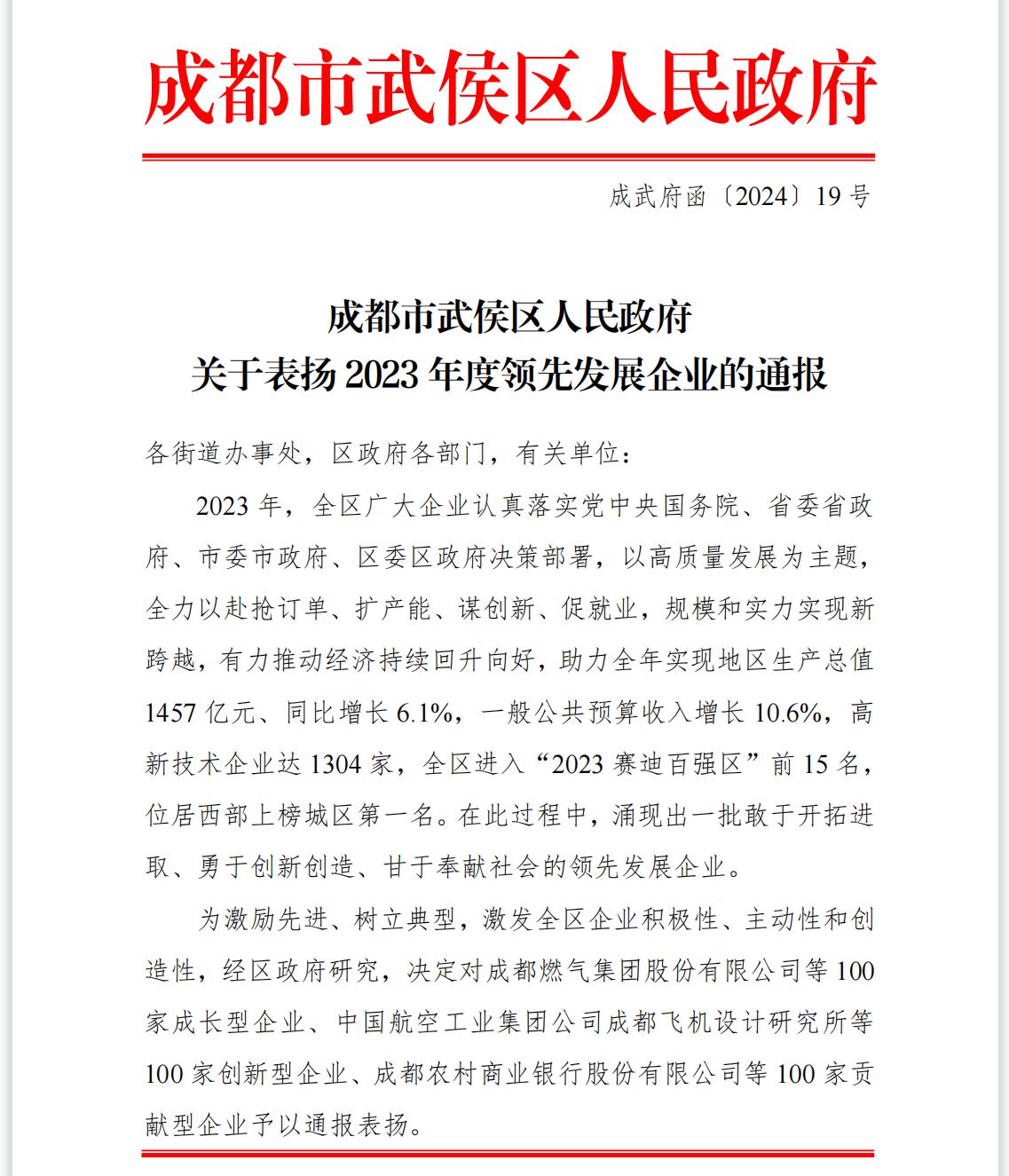 近日,成都市武侯區(qū)人民政府發(fā)布《關(guān)于表揚(yáng)2023年度領(lǐng)先發(fā)展企業(yè)的通報(bào)》,文件表彰了武侯區(qū)一批敢于開拓進(jìn)取、勇于創(chuàng)新創(chuàng)造、甘于奉獻(xiàn)社會(huì)的領(lǐng)先發(fā)展企業(yè),東方凱特瑞被授予“創(chuàng)新型100強(qiáng)企業(yè)”榮譽(yù)稱號(hào),位列該榜第四十七位。