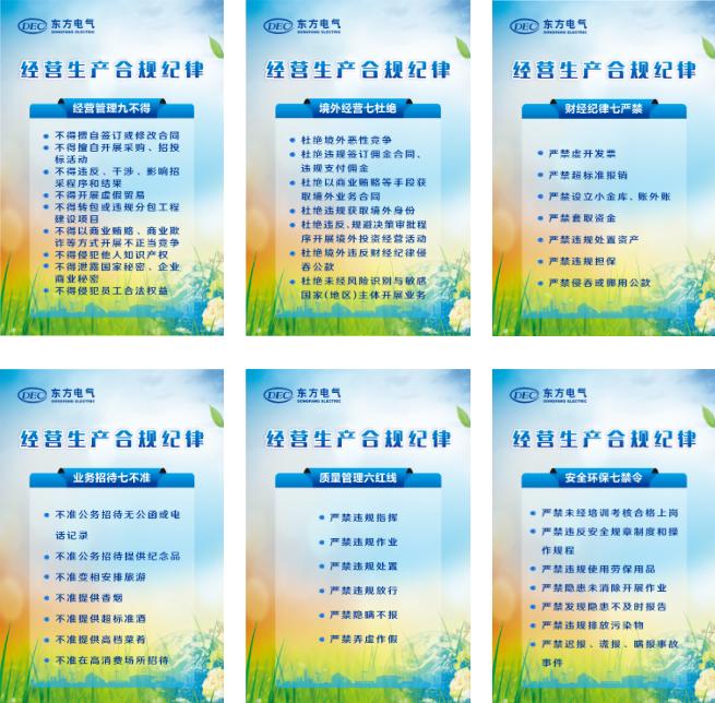 合規(guī)理念是全體東方電氣人必須共同遵循的準(zhǔn)則,也是公司向監(jiān)管機(jī)構(gòu)、投資者、社會公眾作出的鄭重承諾,東方電氣集團(tuán)將始終堅(jiān)持合規(guī)經(jīng)營,促進(jìn)穩(wěn)健發(fā)展。