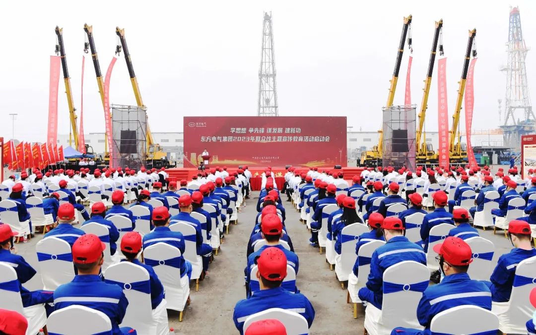 俞培根要求,全集團(tuán)干部職工要牢記習(xí)近平總書記殷殷囑托,更加緊密團(tuán)結(jié)在以習(xí)近平同志為核心的黨中央周圍,將本次活動(dòng)與主題教育一體推進(jìn),凝心鑄魂學(xué)思想,全面系統(tǒng)深入學(xué)習(xí)習(xí)近平新時(shí)代中國特色社會(huì)主義思想,深刻領(lǐng)悟“兩個(gè)確立”的決定性意義,厚植許黨報(bào)國的至純忠誠;迎難而上爭先鋒,當(dāng)好推進(jìn)中國式現(xiàn)代化的主力軍、推動(dòng)高質(zhì)量發(fā)展的排頭兵和增進(jìn)民生福祉的國家隊(duì),厚植踐行使命的至誠擔(dān)當(dāng);竭誠盡智謀發(fā)展,以釘釘子精神推動(dòng)對標(biāo)世界一流企業(yè)價(jià)值創(chuàng)造行動(dòng)各項(xiàng)工作落實(shí)落地,厚植戰(zhàn)略領(lǐng)先的至堅(jiān)本領(lǐng);團(tuán)結(jié)奮斗建新功,多謀實(shí)干之策、多出實(shí)干之招,厚植實(shí)干擔(dān)當(dāng)?shù)闹琳娉煽儭? 集團(tuán)公司黨組副書記、董事宋致遠(yuǎn)主持啟動(dòng)會(huì)。在總結(jié)講話中,宋致遠(yuǎn)要求,集團(tuán)公司各單位要深刻認(rèn)識本次群眾性主題宣傳教育活動(dòng)的重要意義,及時(shí)將啟動(dòng)會(huì)精神傳達(dá)到每一名黨員、統(tǒng)戰(zhàn)人士、團(tuán)員青年和一線職工,把“學(xué)思想、爭先鋒、謀發(fā)展、建新功”的強(qiáng)音傳達(dá)到集團(tuán)公司每一個(gè)角落。 啟動(dòng)會(huì)上,“創(chuàng)先爭優(yōu)”項(xiàng)目團(tuán)隊(duì)代表、“我為群眾辦實(shí)事”掛牌項(xiàng)目團(tuán)隊(duì)代表、先進(jìn)模范代表、團(tuán)員青年代表依次作表態(tài)發(fā)言。 啟動(dòng)會(huì)上還開展了“同·創(chuàng)”文化深植活動(dòng)。俞培根向東方宏華職工代表贈(zèng)送企業(yè)文化系列叢書《創(chuàng)業(yè)》《奮斗》《跨越》,青年代表莊冉深情講述了中國“爭氣機(jī)”的研制故事,與會(huì)人員集體觀看了集團(tuán)公司文獻(xiàn)紀(jì)錄片《東方》第二集“爭氣爭光”,同唱東方電氣司歌《世界的東方》。 股份公司領(lǐng)導(dǎo)、集團(tuán)公司總經(jīng)理助理級領(lǐng)導(dǎo),總部職能部門、事業(yè)部負(fù)責(zé)人,各二級企業(yè)黨委書記、分管黨建工作副書記及先進(jìn)模范代表、基層黨員代表、統(tǒng)戰(zhàn)人士代表、團(tuán)員青年代表等參加啟動(dòng)會(huì)。