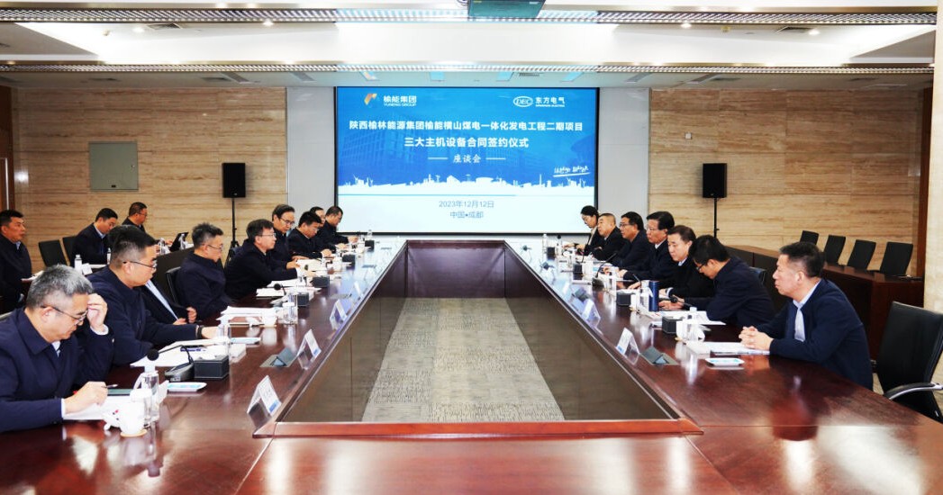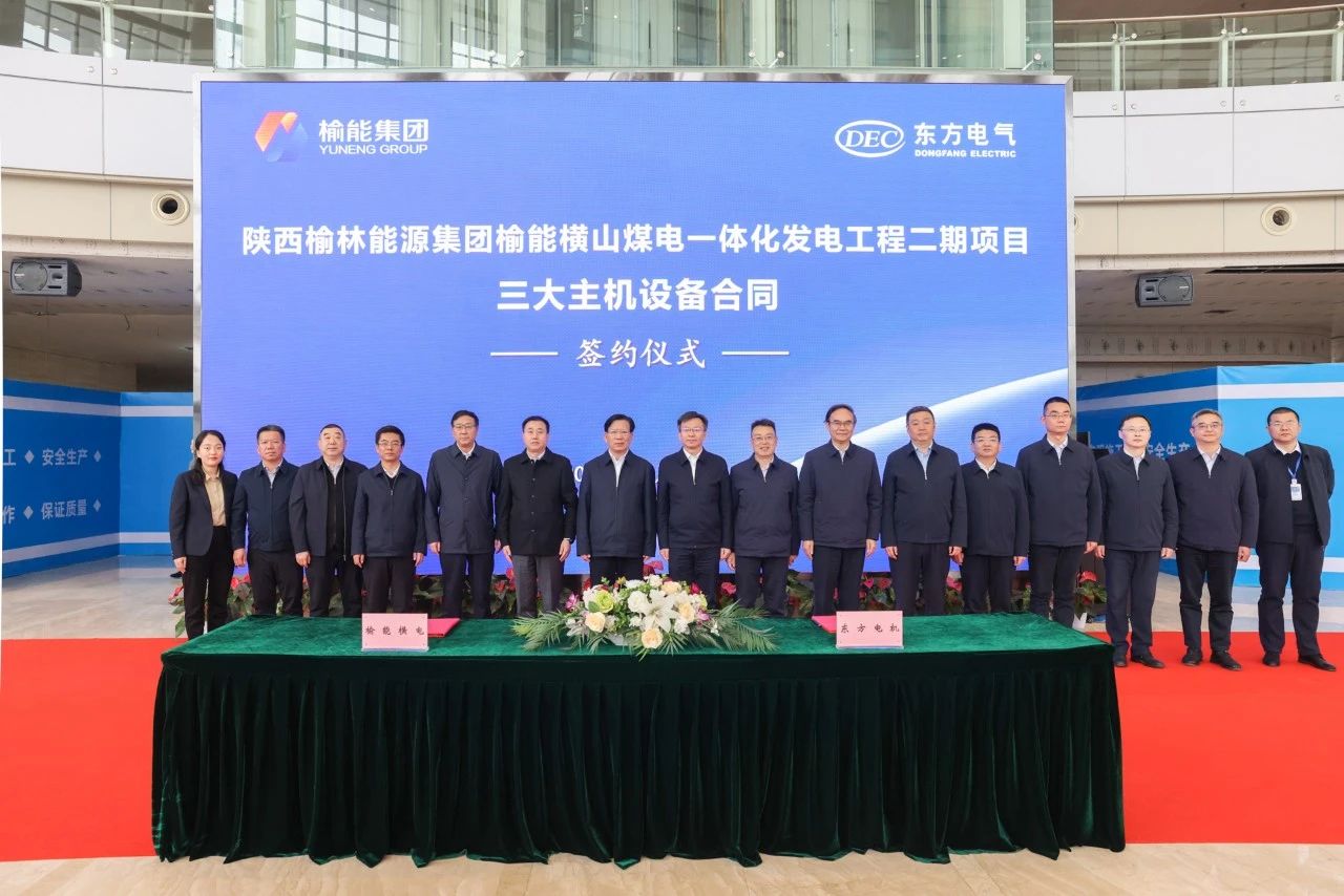 本網(wǎng)訊 12月12日,中國東方電氣集團(tuán)有限公司與陜西榆林能源集團(tuán)有限公司在成都簽署榆能橫山煤電一體化發(fā)電工程二期項(xiàng)目三大主機(jī)設(shè)備合同。東方電氣集團(tuán)黨組成員、副總經(jīng)理李忠軍,榆能集團(tuán)黨委書記、董事長薛衛(wèi)東,黨委委員、副總經(jīng)理?xiàng)钯还餐娮C簽約。