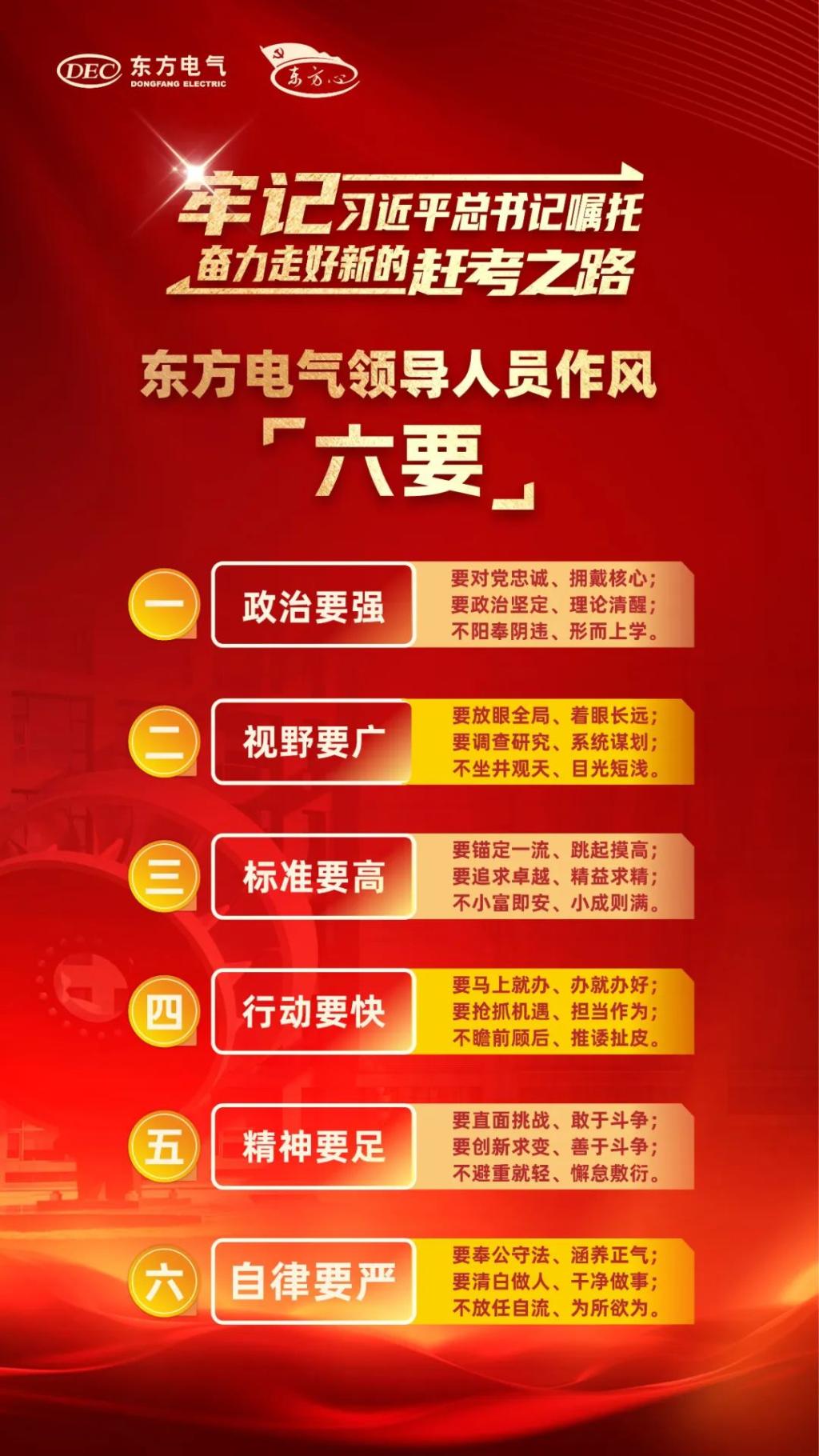 俞培根要求,實現(xiàn)“十四五”發(fā)展目標(biāo)、加快創(chuàng)建世界一流企業(yè)需要全體東方電氣人接續(xù)奮斗,各級領(lǐng)導(dǎo)班子和領(lǐng)導(dǎo)人員是走在前、作表率的“關(guān)鍵少數(shù)”,要以東方電氣領(lǐng)導(dǎo)人員作風(fēng)“六要”嚴(yán)格要求自己,煥發(fā)出更加昂揚(yáng)向上的精神狀態(tài)、展現(xiàn)出更加銳意進(jìn)取的奮斗姿態(tài),帶領(lǐng)廣大職工以過硬作風(fēng)拼搏奮進(jìn)爭先,為加快建設(shè)具有核心競爭力的世界一流裝備制造集團(tuán)貢獻(xiàn)智慧力量。