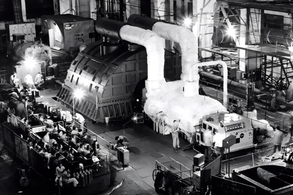 “華龍一號”是我國完全自主設(shè)計研發(fā)的三代核電技術(shù),歷經(jīng)30多年潛心研發(fā),成功打破國外核電技術(shù)的壟斷,推動中國核電進一步走向世界。“華龍一號”ZH-65型蒸汽發(fā)生器是承接核裂變產(chǎn)生的能量,并產(chǎn)生高溫水蒸汽,推動汽輪發(fā)電的關(guān)鍵設(shè)備。 2017年10月17日,由集團公司承制的全球首堆“華龍一號”蒸汽發(fā)生器在東方重機順利完工發(fā)運。該設(shè)備重達390噸,高22米,功率1150兆瓦,標志并見證著中國第三代核電設(shè)備自主設(shè)計制造能力的成熟。 “共和國印跡”見證物 第一臺300兆瓦汽輪機低壓轉(zhuǎn)子