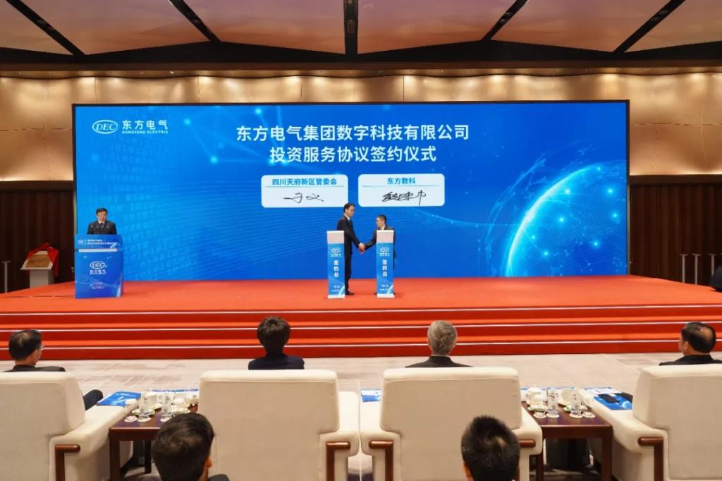 活動(dòng)現(xiàn)場,東方數(shù)科與四川天府新區(qū)管委會(huì)簽署投資服務(wù)協(xié)議。