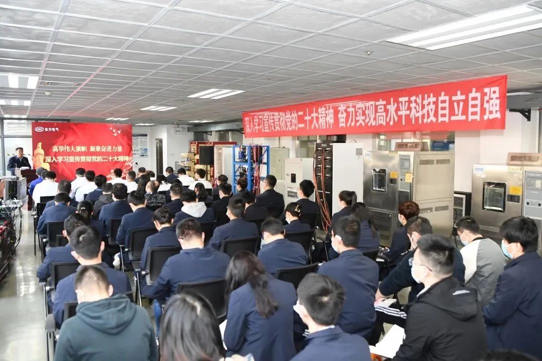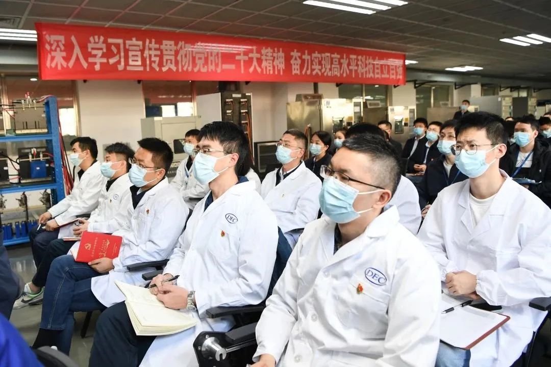 本網(wǎng)訊 為引導(dǎo)全集團(tuán)廣大干部職工切實(shí)把思想和行動(dòng)統(tǒng)一到黨的二十大精神上來,根據(jù)東方電氣集團(tuán)黨組統(tǒng)一部署,11月22日,集團(tuán)公司“高舉偉大旗幟 凝聚奮進(jìn)力量”黨的二十大精神宣講隊(duì)首場宣講報(bào)告會(huì)在東方研究院新能源電池測試實(shí)驗(yàn)室舉行,用“行走的課堂”講述“我們身邊”拼搏奮進(jìn)爭先的鮮活故事,激勵(lì)科研工作者以實(shí)干搶抓創(chuàng)新先機(jī),為加快實(shí)現(xiàn)高水平科技自立自強(qiáng)貢獻(xiàn)“東方”力量。